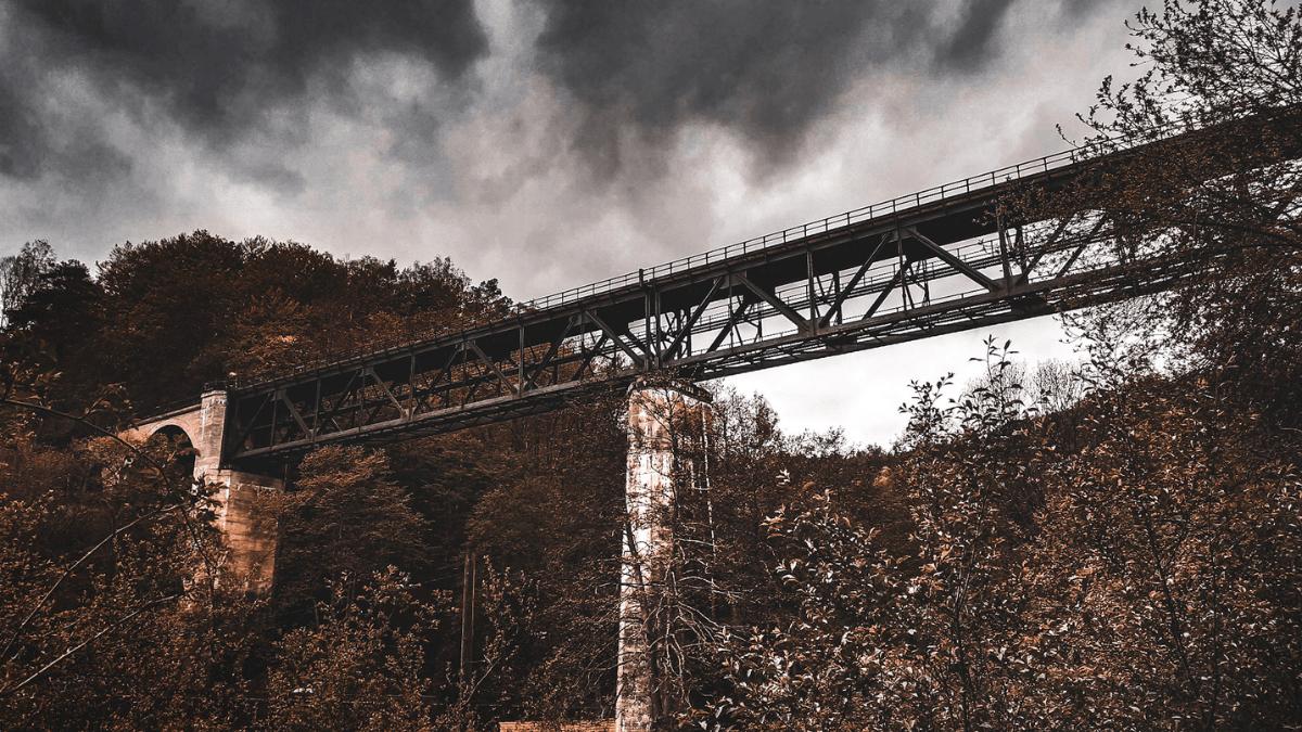 Der letzte Zug der Eistalbahn fuhr 1988 über die eingleisige Brücke, welche den Eisbach sowie eine Landesstrasse überspannt.